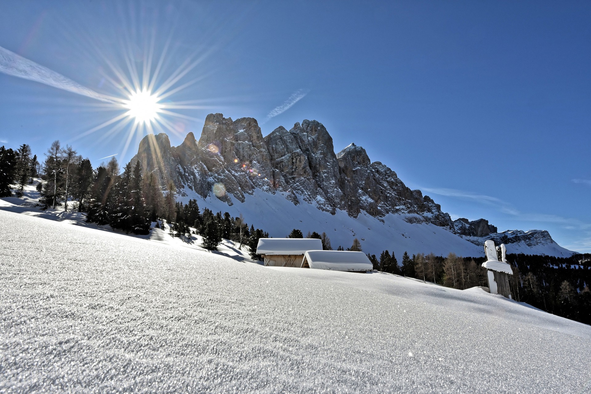 Direkt an der Almhütte befindet sich ein Erlebnisspielplatz für Kinder. Hier können kleine Feriengäste sich nach Herzenslust austoben, bevor sie gemeinsam mit ihren Eltern den Rückweg von der Almhütte antreten. Zu den weiteren Highlights der Geisleralm gehört ein Streichelzoo mit einigen heimischen Tierarten. Bei schlechtem Wetter sorgen Brettspiele in der Hütte für Beschäftigung der jungen Besucher. Nach einer Stärkung auf der Hütte lohnt sich ein Abstecher zum nahegelegenen Naturparkhaus Puez-Geisler. Kommen Sie in der Wintersaison auf die Hütte, können Sie vor Ort Rodelschlitten ausleihen und die eindrucksvolle Rodelpiste nach Ranoi ausprobieren. Außerdem haben Sie ganzjährig die Möglichkeit, sich vor der imposanten Bergkulisse an der Almhütte das Ja-Wort zu geben. Unvergesslich ist auch ein Besuch des Geislerkinos.