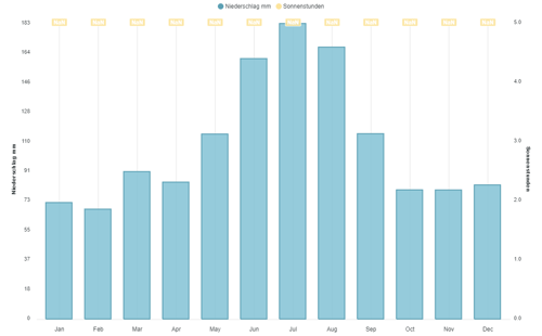 Niederschlag (mm) & Sonnenstunden (h)