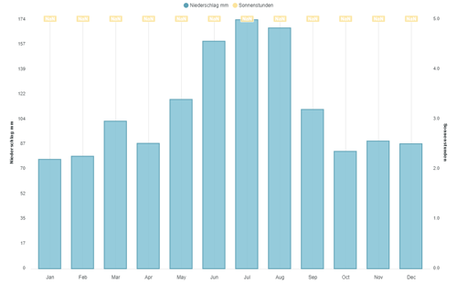 Durchschnittliche Wetterdaten der letzten fünfzig Jahre