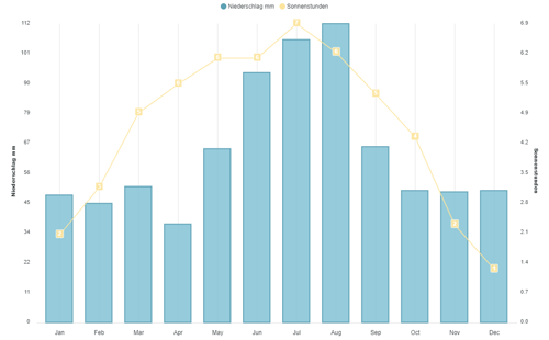 Durchschnittliche Wetterdaten der letzten fünfzig Jahre