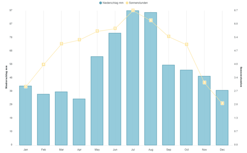Durchschnittliche Wetterdaten der letzten fünfzig Jahre