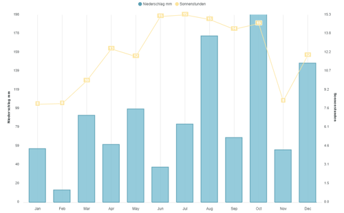 Durchschnittliche Wetterdaten der letzten fünfzig Jahre