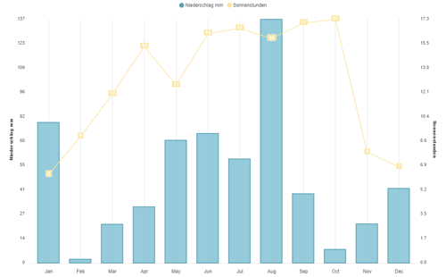 Durchschnittliche Wetterdaten der letzten fünfzig Jahre