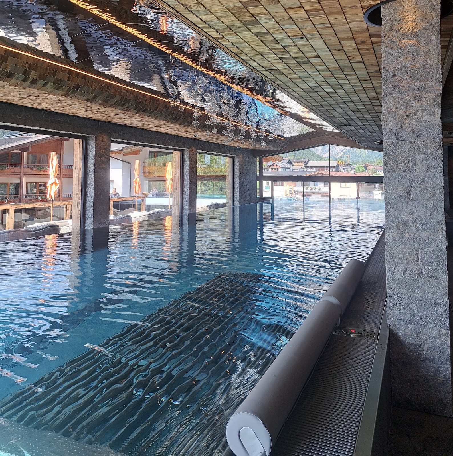 Relaxen at it´s best: Im Kristall macht auch der SPA-Bereich wunschlos glücklich. Auf 2100 m² Spa mit neuer Wellness-Alm locken 8 Sauna- und Dampfbad-Variationen sowie ein Hallenbad zu Adults Only Wellness. Im neuen, 21 Quadratmeter großen Panorama-Außenwhirlpool lässt sich auf 21 Quadratmetern entspannen. Nach dem Eintauchen im Bio-Naturteich laden Loungemöbel im Garten, vier Ruhebereiche und die Stille Alm mit Kaminfeuer zum Tag-Träumen und Relaxen ein. In 8 Behandlungsräumen wird mit Kosmetikbehandlungen, klassischen und fernöstlichen Massagen, Ayurveda, Softpack-Körperpackungen, Bädern und Treatments mit dem bekannten Tiroler Steinöl verwöhnt. In der Private Spa Suite und beim Floating in der neuen Solegrotte schwebt man auch zu zweit in den 7. Wellness-Himmel. NEU erweitert ab 1. Juli 2025 das 1400 m² Sky Spa und ein zweiter Bio-Badeteich das Erlebnis und verspricht mit Infinity Innen- und Außenpool, neuen Relaxoasen u.v.m. himmlisches Entspannen auf gesamt 3500 m² Wellness im Kristall.