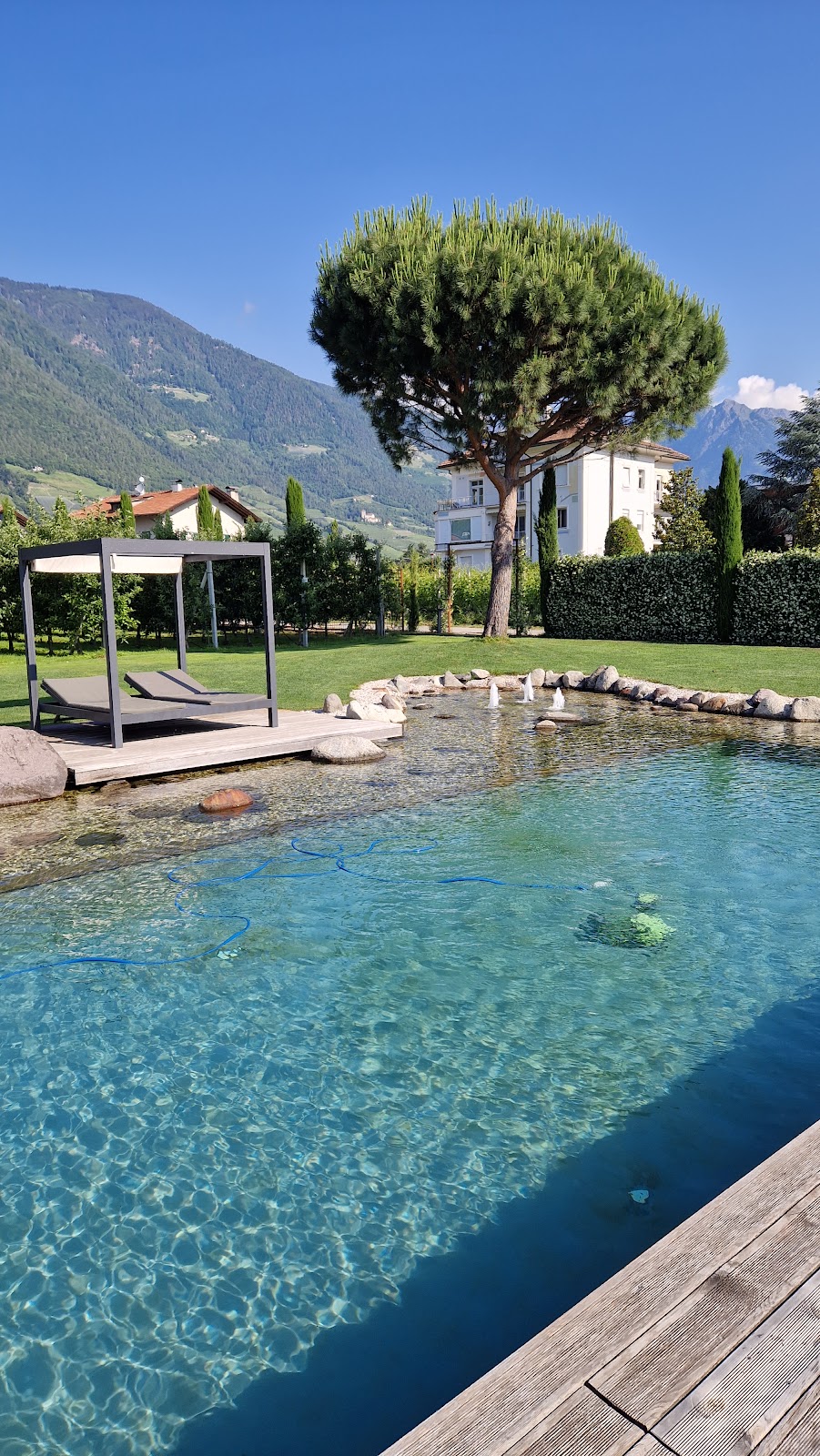 Geradezu vollkommen für eine rundum wertvolle und nachhaltige Auszeit mit den Besonderheiten: der Natur-Bio-Pools, die grüne und gesunde Küche, der weitläufige mediterrane Garten mit vielen Kuschelecken, der freie Wellnessbereich, Yoga, E-Biken, Wandern und Waldbaden. Mitte März mit dem Naturerwachen startet auch das Tiefenbrunn mit Outdoor Aktivitäten, vor allem dem Radfahren. Direkt am Radweg gelegen, erkunden Sie die Täler wie das Vinschgau oder radeln sogar bis zum Gardasee. Aber selbst das Apfeldorf Lana inspiriert Sie mit Spaziergängen am Waalweg, zum Golfplatz oder in den historischen Dorfkern mit Kirchen und Bistros – oder haben Sie Lust aufs Shoppen italienischer Schuhe?