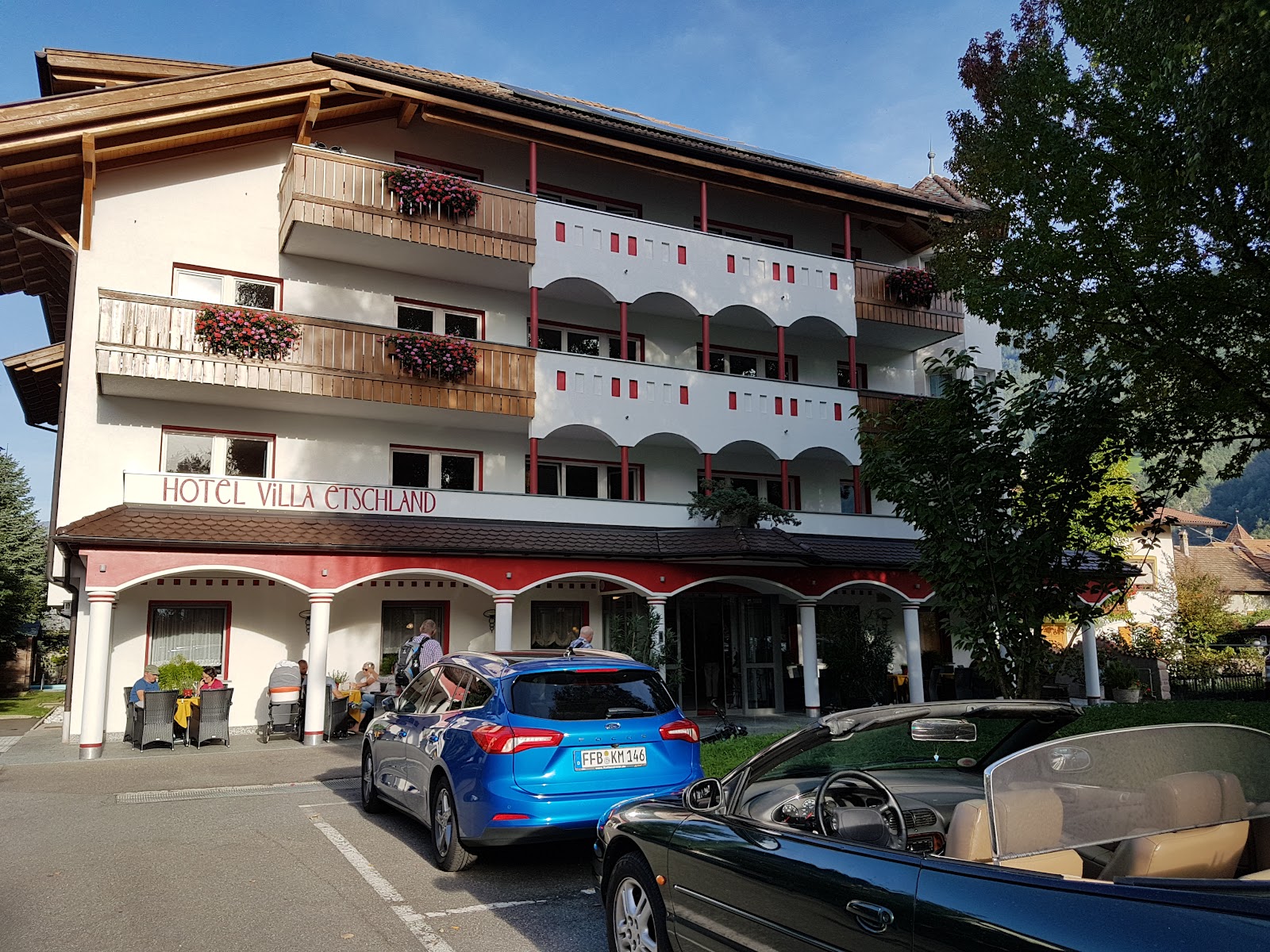 Das 4 Sterne Parkhotel Villa Etschland befindet sich in der etwa 10 Kilometer westlich von Meran gelegenen kleinen Ortschaft Plaus. Gut erreichbar ist es über die von Bozen und Meran in Richtung Stilfser Joch verlaufende Staatsstraße SS 38. Eingebettet zwischen Obst- und Weingärten und lediglich 200 Meter vom rechten Ufer der Etsch entfernt, erwartet Sie die Villa Etschland als ein kleineres, sehr gemütlich erscheinendes Hotel in einer ruhigen und idyllischen Lage im Untervinschgau.