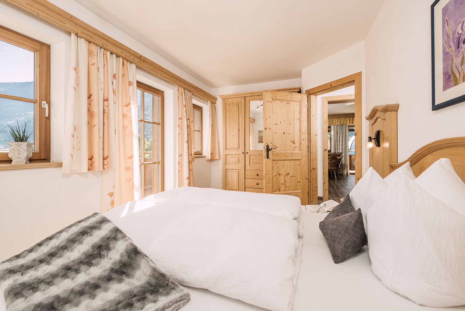 Zum Feriendorf gehören verschiedene Ferienwohnungen, die im typischen Baustil Südtirols errichtet wurden. Sie bieten Platz für zwei bis zwölf Personen und eignen sich daher hervorragend für Familien mit Kindern und kleine Reisegruppen. Eine weitere Unterkunft ist das Almchalet Wieslhütte, welches erst 2023 eingeweiht wurde. Über zwei Ebenen verteilen sich drei Schlafzimmer, die Platz für bis zu neun Personen bieten. Die Almhütte ist ideal für Urlauber, die abseits des Trubels Ruhe und Nähe zur Natur suchen, denn sie befindet sich auf einer Alm am Gerlosberg.