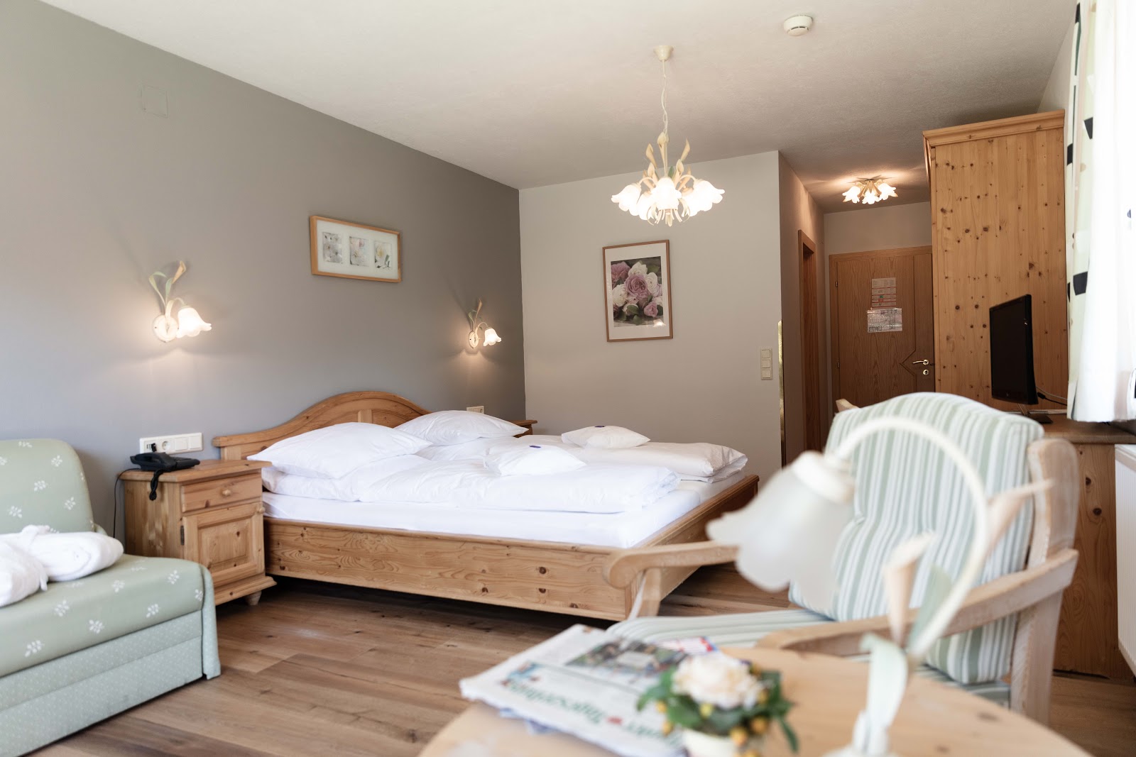 Im Haus gibt es ein großzügiges Angebot an Wellness: Sauna, Liegestühle im Ruhebereich und gebührenpflichtige Massagen sorgen für Entspannung pur im Tiroler Voralpenland.