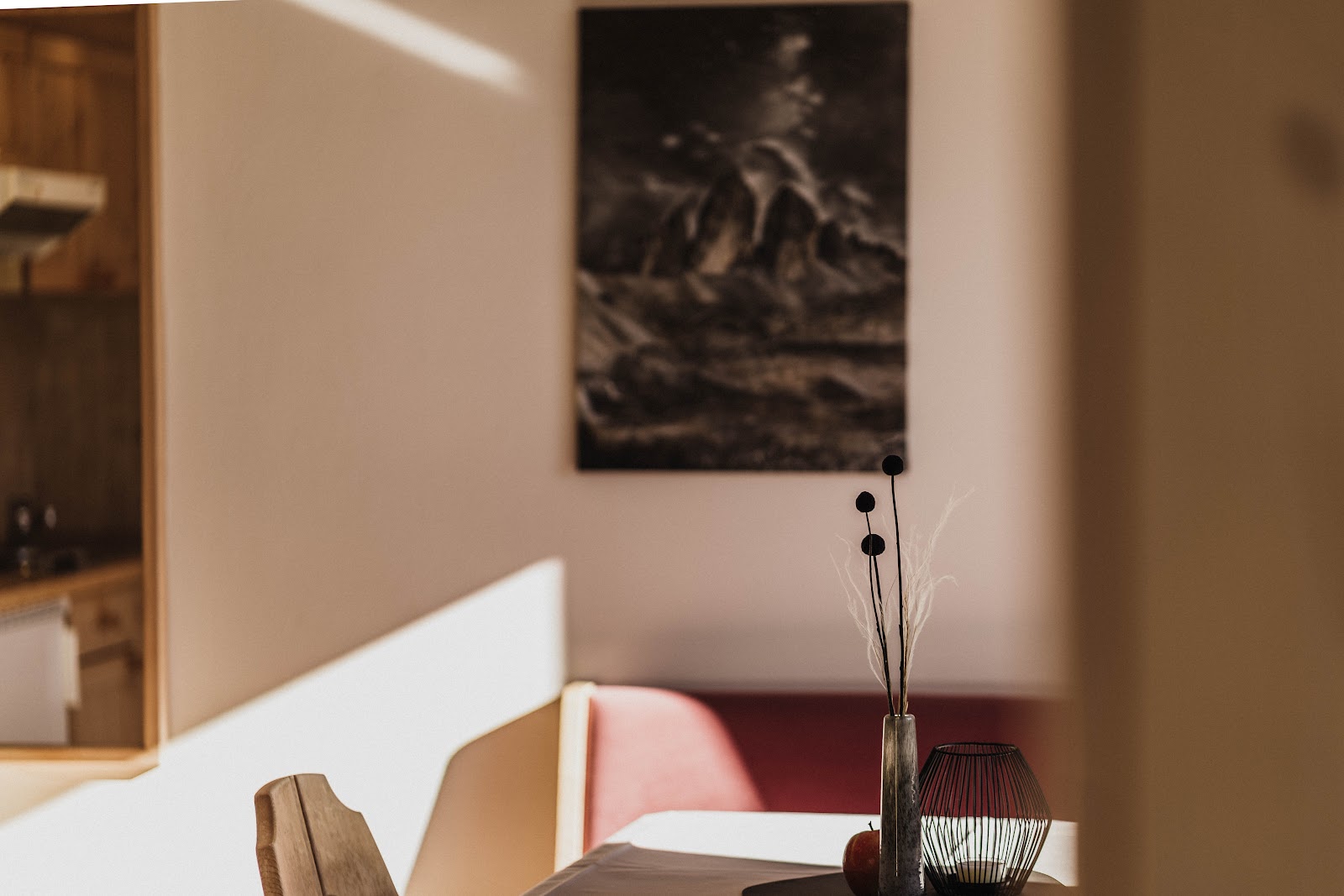 Die gemütliche Einrichtung der Zimmer begeistert durch viel Holz und Südtirol-Flair. Auch bei der Gestaltung der Ferienwohnungen hat derGastgeber des Thalguter Rooms & Breakfast Wert auf Gemütlichkeit und Komfort gelegt. Bei beiden Übernachtungsmöglichkeiten erwartet die Gäste am Morgen ein erstklassiges Frühstück. Auf dem Buffet befinden sich verschiedene regionale Produkte, die einen köstlichen und kraftvollen Start in den Urlaubstag garantieren. Für den Abend hält der Gastgeber zahlreiche Tipps zu Restaurants in der Umgebung des Thalguter für seine Feriengäste bereit.