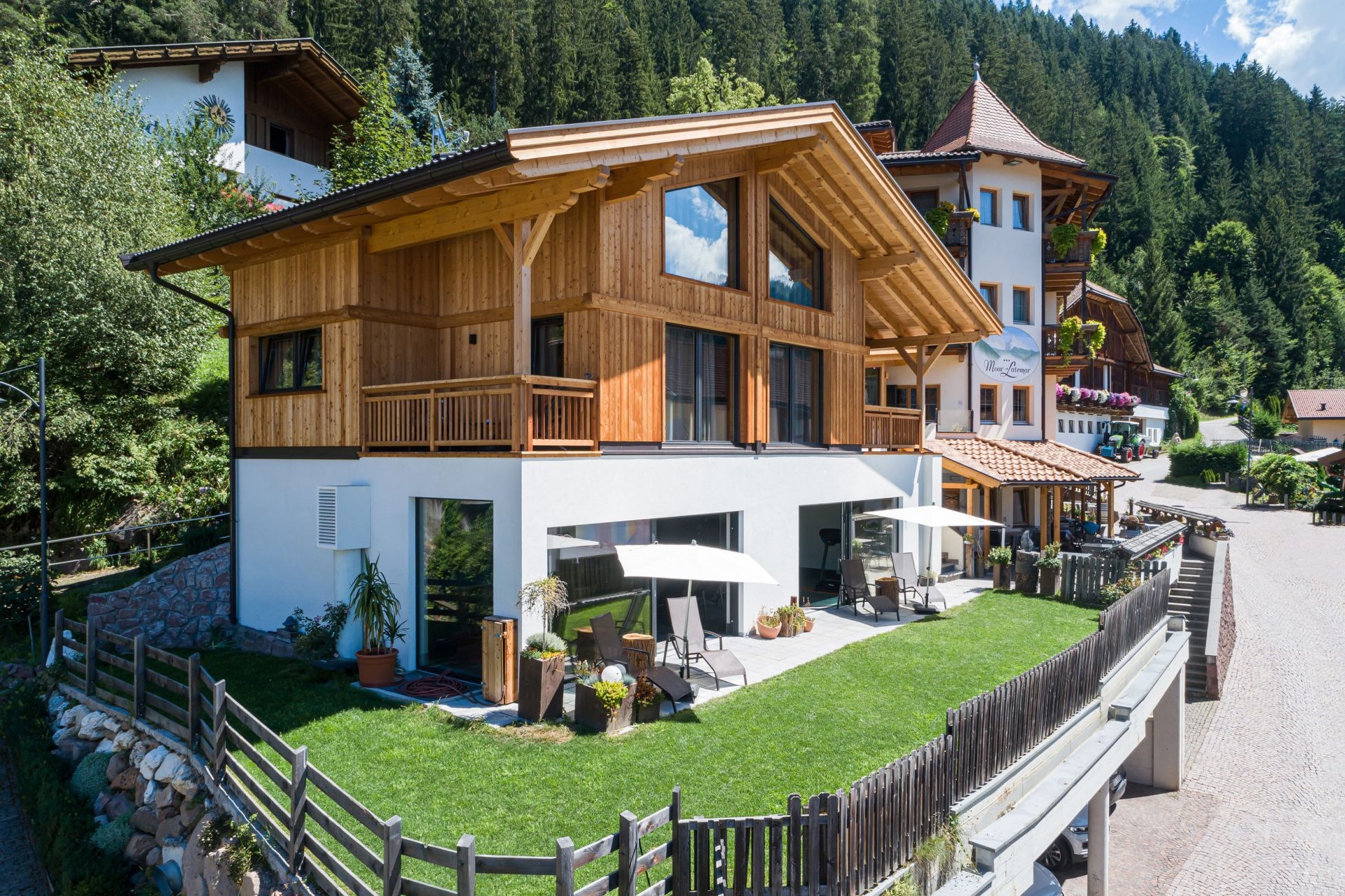 Mitten im Südtiroler Eggental liegt das zur Gemeinde Deutschnofen gehörende Bergdorf Eggen. Hier, im zentralen Bereich des Ortes bietet sich Ihnen das Hotel Latemar mit engagierter Gastfreundlichkeit und einem herrlichen Ausblick auf den bizarr erscheinenden Gebirgsstock des Latemar für einen unbeschwerten Urlaubsaufenthalt an. In einem der 20, mit Balkon oder Zugang zur Sonnenterrasse ausgestatteten Komfortzimmer untergebracht, erwartet Sie im Latemar ein reichhaltiges Frühstücksbuffet und ein abwechslungsreich gestaltetes 4-Gang-Abendmenü. Vegetarische oder vegane Gerichte werden Ihnen auf Wunsch zubereitet. Neben den kulinarischen Genüssen bietet Ihnen das Hotel aber auch die Möglichkeit Energie aufzutanken und Entspannung zu finden. Der dafür eingerichtete kleine Wellnessbereich hält eine finnische Sauna, ein Dampfbad und zwei Wannen für Unterwassermassagen bereit.