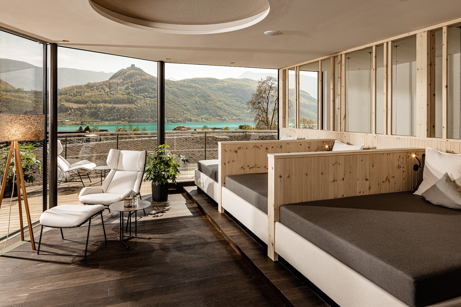 Der neu umgebaute Wellnessbereich beflügelt. Ruhezonen mit Blick in die Weinberge. Saunas der Extraklasse. Der Adults Only Indoor-Outdoor Infinity Pool mit Panoramablick. Das Hallenbad. Entspannen bei sanften Massagen. Innehalten. Und dennoch das Außen im Blick. Das Strahlen des Naturbadeteichs. Das olivgrün der mediterranen Gartenoase. Das azurblau des Himmels. Die Krönung: die beiden exklusiven Privatstrände am unberührten Ufer des Kalterer Sees. Abtauchen im Smaragdgrün. Rasante Fahrten mit dem Surfbrett. Erste Versuche mit dem Stand Up Paddle. Was gibt es Schöneres?