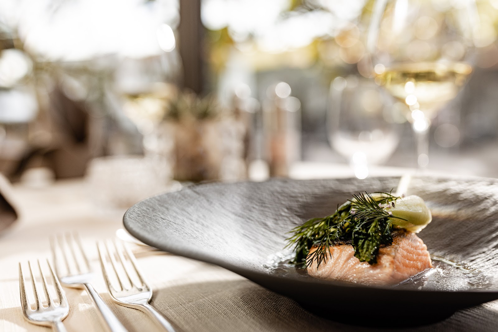Erfreuen Sie sich alpin-mediterraner und saisonaler Kreationen unter der Sonne des Südens in einer unvergesslichen Atmosphäre. Schlemmen Sie den Geschmack des Südens. Die Aromen der Alpen. Zirbe. Latsche. Heu. Gepaart mit Düften der mediterranen Küche. Rosmarin. Basilikum. Thymian. Köstlich! Geschmacksfeuerwerke auf den Tellern und edle Weine im Glas sind ein krönender Abschluss eines harmonischen Urlaubstages.