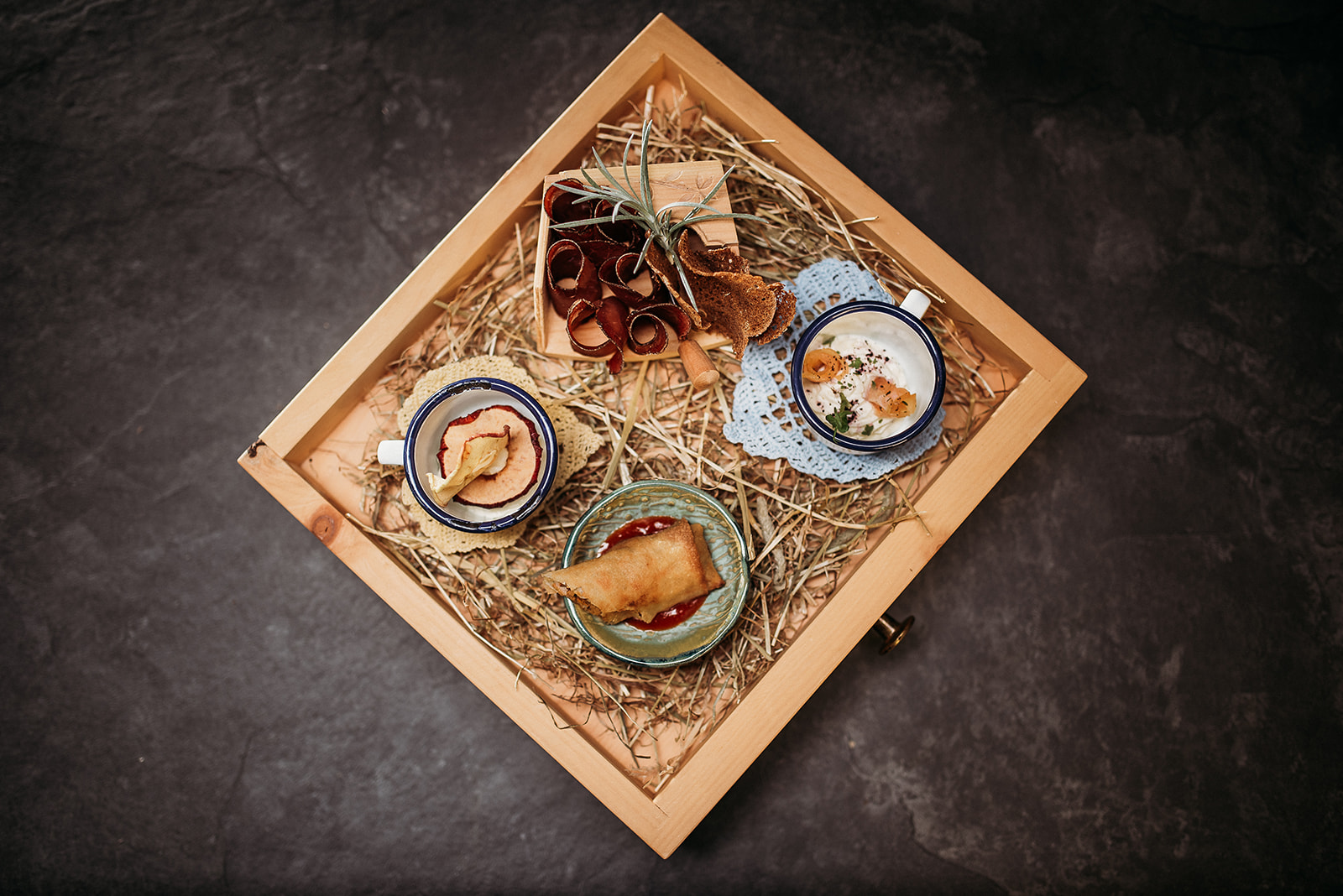 Schon am Morgen starten Gäste des Spitalerhofs genussvoll in den Tag, wenn sie sich am reichhaltigen Winzerfrühstück stärken. Abends werden im hauseigenen Restaurant Muga vor allem regionale und saisonale Produkte zu erlesenen Speisen verarbeitet. Wie es sich für ein echtes Weingut gehört, kommen selbstverständlich auch die eigenen Weine auf den Tisch. Auch an der Bar und auf der gemütlichen Terrasse haben Urlauber die Möglichkeit, die Weine des Spitalerhofs zu verkosten.