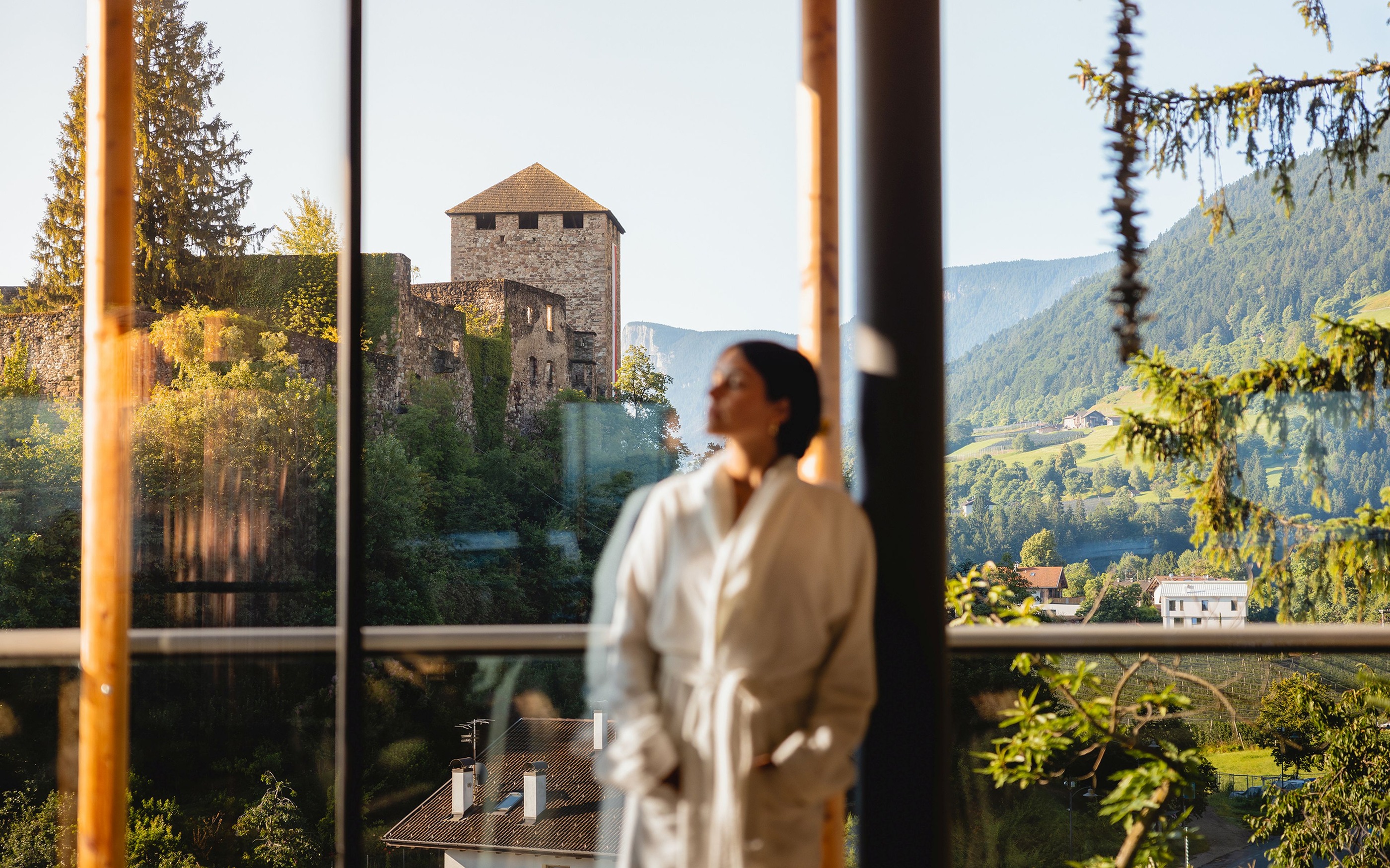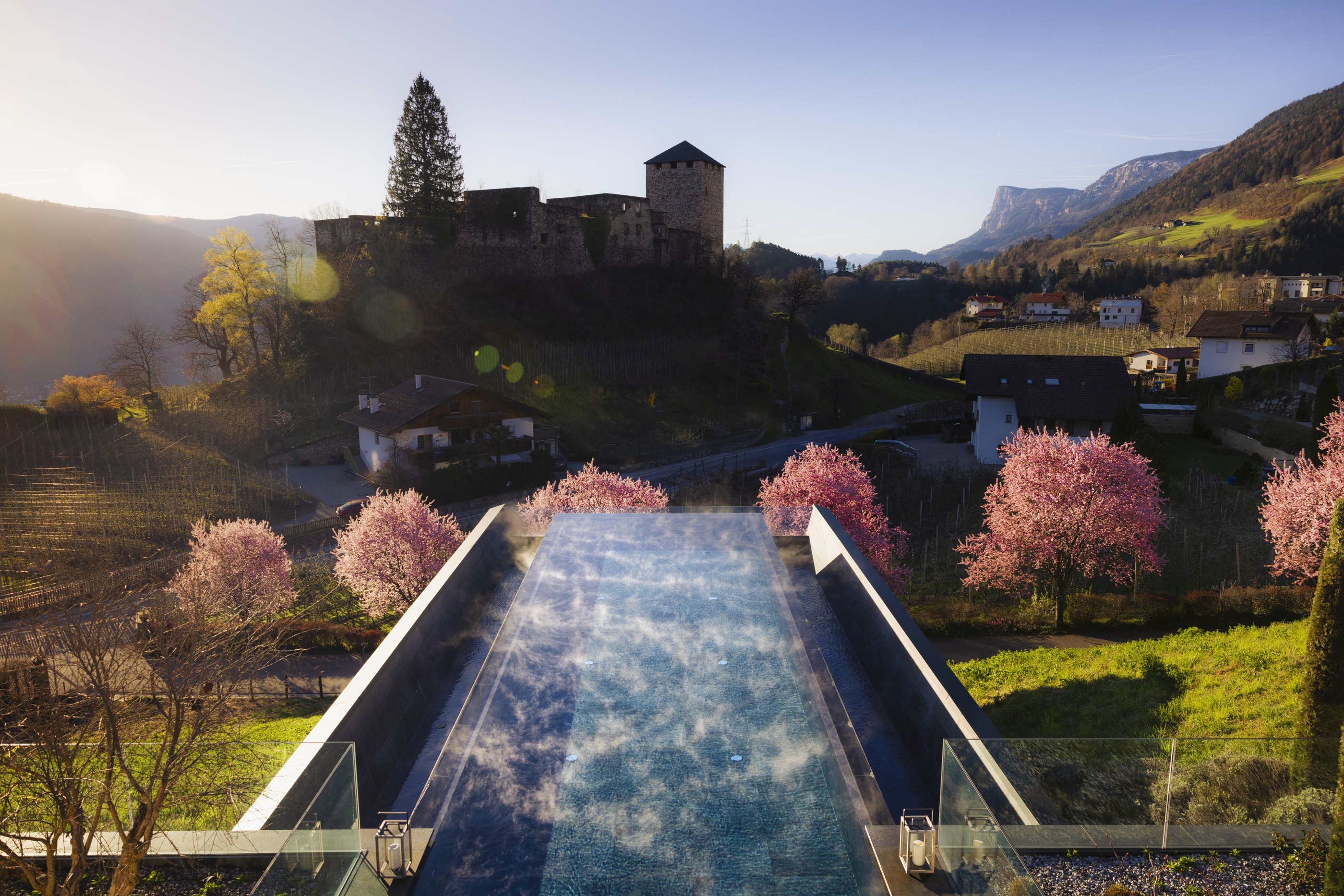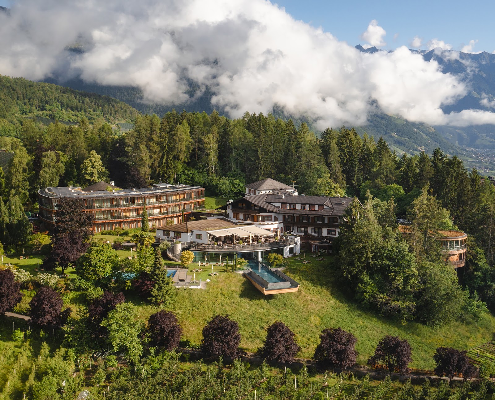 Völlan, ein sonnenverwöhnter Ort oberhalb von Lana und südlich von Meran, liegt eingebettet zwischen Wiesen und Obstgärten im Völlaner Mittelgebirge. Genau hier befindet sich das Hotel Der Waldhof²: ruhig gelegen, naturnah – und zugleich ein idealer Ausgangspunkt, um Meran, das Etschtal und die umliegenden Berge zu entdecken. Direkt am Haus beginnt der hauseigene Waldpark – ein Stück Natur, das sofort entschleunigt. Zwischen alten Bäumen und dem einzigartigen Biotop wird aus einem Spaziergang schnell ein Innehalten. Momente, die in Erinnerung bleiben, entstehen im beheizten Infinitypool mit Mayenburg-Panorama, während rund ums Hotel sonnige Plätze zum Lesen und Entspannen einladen.