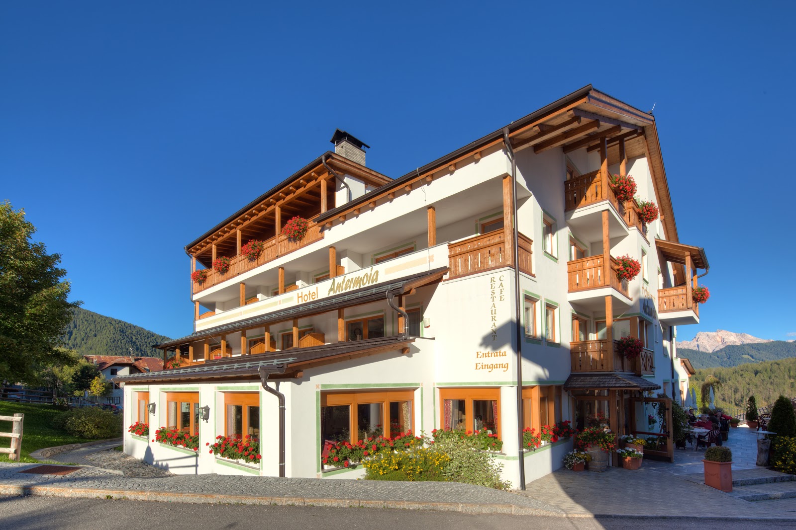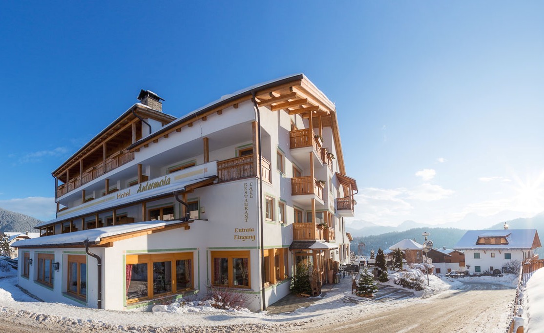 Das 3-Sterne-Hotel Antermoia erwartet Sie als Urlaubsgast im gleichnamigen, zur Gemeinde St. Martin in Thurn gehörenden Ort. Gelegen auf rund 1.500 Meter Höhe gilt Antermoia als höchstes Dorf der im mittleren Gadertal liegenden ladinischen Gemeinde. Das Hotel befindet sich mitten in diesem Bergdorf, das umgeben von Weiden und Wäldern unterhalb des zum Naturpark Puez-Geisler gehörenden Peitlerkofels liegt. Erreichbar ist das ruhig am Waldrand liegende Hotel Antermoia über die westliche von Bruneck vom Pustertal in südlicher Richtung abzweigende Gadertaler Staatsstraße SS 244.