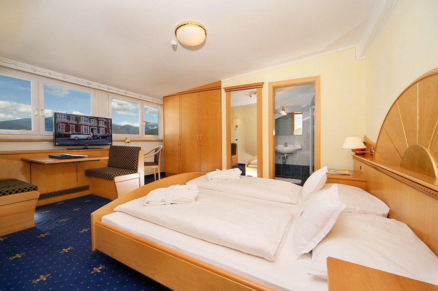 Zum Wellnessbereich des Hotels gehören ein Hallenbad mit Gegenstromanlage und integriertem Whirlpool. Im erfrischenden, solargeheizten Freibad können Sie ihre Bahnen mit Blick auf die Dolomiten absolvieren. Ein separater Outdoor-Whirlpool, ein Kneipp-Parcours, das Sauna-Angebot und verschiedenste Massagen & Beauty-Anwendungen runden das umfangreiche Wellnessangebot ab.