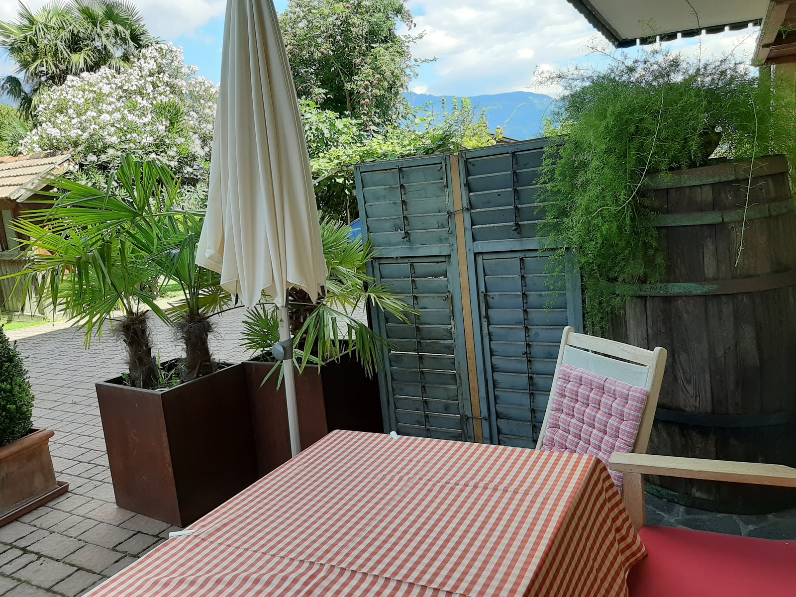 Die Residence der Familie Mazohl ist wie eine Oase der Ruhe und Entspannung: Die acht modern eingerichteten Appartements Obermaratscher in Algund verwöhnen mit einem fantastischen Blick und auf das Meraner Umland. Das grüne Tal ist bekannt für seine Weinstöcke, die zur Südtiroler Kulinarik beitragen. Die Appartements sind allesamt zwischen 32 und 55 Quadratmeter groß und eignen sich daher perfekt für Familien. Die Appartements verfügen über eine komfortable Küche und eine Fernsehecke. Einige der Zimmer haben einen eigenen Balkon, der die schöne Bergwelt noch näher bringt. Ein liebevoll eingerichteter Garten trägt zur Erholung bei, der mit einem Pool, Sonnenliegen und Palmen ausgestattet ist. Spielgeräte für die Kleinen liegen vor Ort bereit und die E-Bikes sind in der abschließbaren Garage unterzubringen.