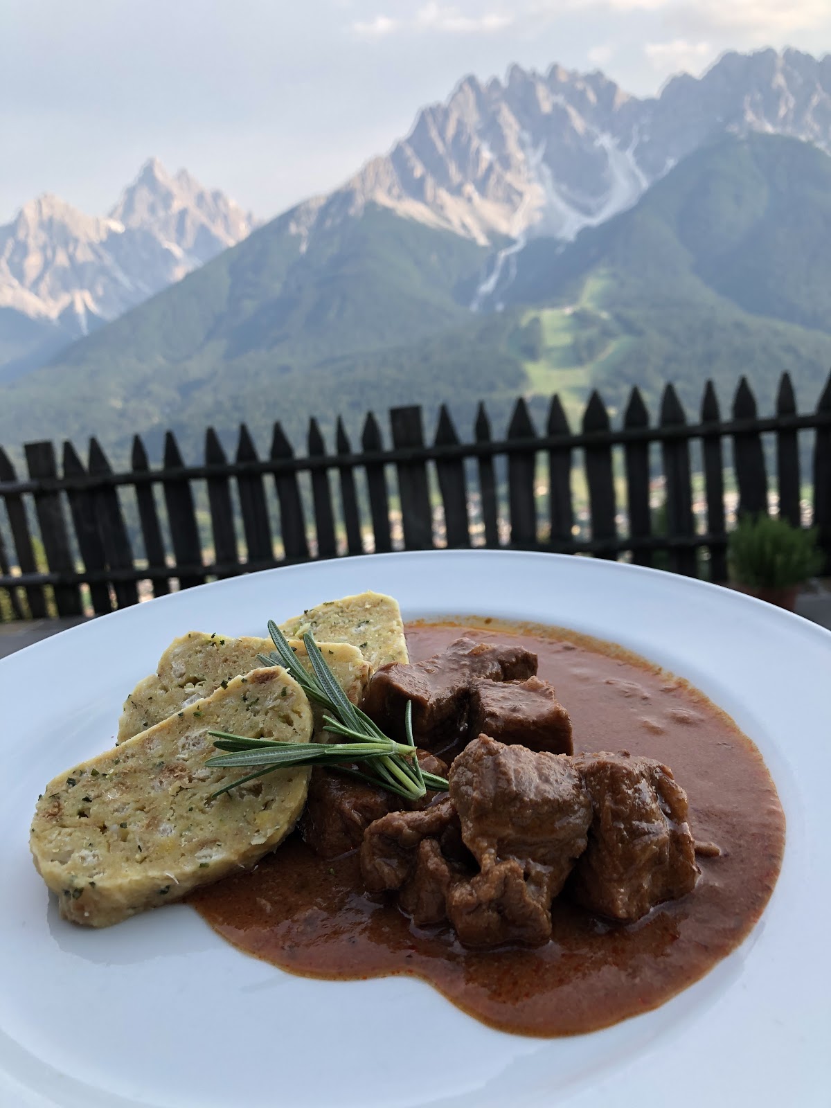 Die modern gestaltete Wellness-Landschaft überzeugt mit lichtdurchfluteten Scheiben, die einen fantastischen Panoramablick freigegeben. Der Infinity-Pool aus Edelstahl ist das Herzstück. Ruheliegen aus Holz, die finnische Sauna sowie die Dampfsauna vervollständigen den Wellnessbereich. Neben der Erholung für den Körper hat der Bergbauernhof Gourmet vom Feinsten im Angebot. Täglich wird für Sie frisch gekocht mit regionalen Bio-Produkten und eigenen Zutaten vom Hof.