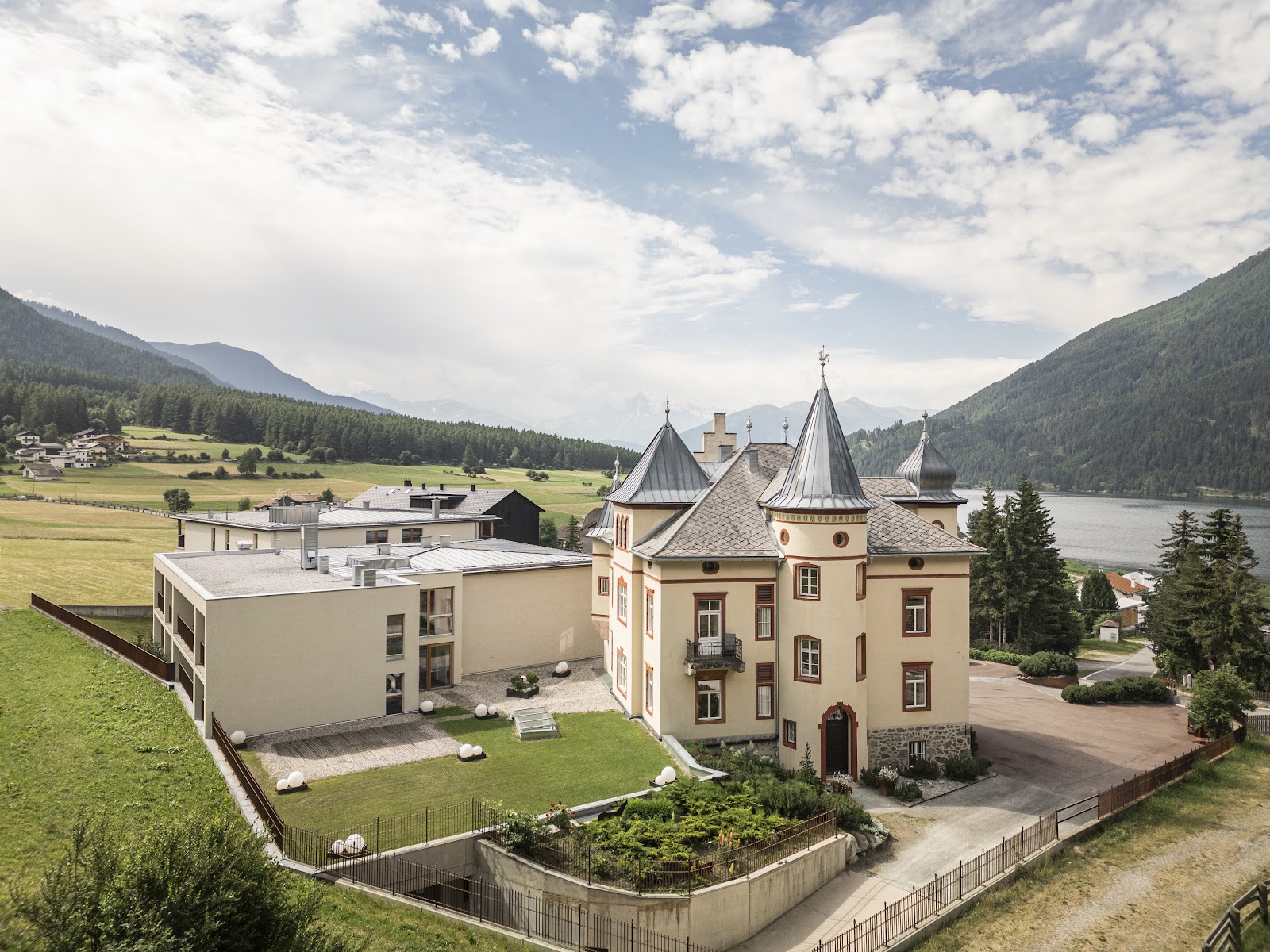 Gelegen am Rand eines Lärchenwaldes, der das zwischen Haidersee und Reschensee liegende Dorf St. Valentin auf der Haide begrenzt, bieten die Zimmer und Suiten der Villa Waldkönig herrliche Ausblicke auf den Haidersee vor der Kulisse des Ortlermassivs. In dieser Jugendstilvilla wird Ihnen die Möglichkeit geboten, einen mit abwechslungsreichen Wellnessvergnügen angereicherten Aktivurlaub zu erleben. Im Sommer lädt Sie die Seenlandschaft am Reschenpass zu ihrer Erkundung und zu Badespaß und Wassersport ein, finden hier zahlreiche Sportveranstaltungen statt und erwartet Sie als Biker ein wahres Eldorado. Der Winter stehen dagegen Eislaufen und Winterwandern sowie das Vergnügen auf den Pisten im Skigebiet Schöneben-Haideralm ganz vorn auf der Beliebtheitsskala sportlicher Aktivitäten.