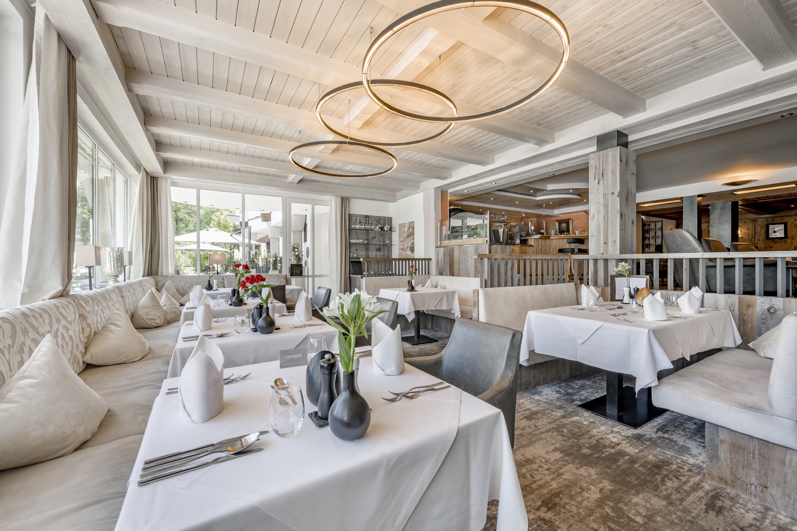 Mit einem ausgewogenen Frühstücksbuffet startet man im Lärchenhof in einen schwungvollen Tag. Nach einem Tag in der Natur kann man im skySpa und im Pool entspannen oder sich bei einer wohltuenden Massage vom marVita Spa Team verwöhnen lassen. Das umfassende Gesamtkonzept beruht auf Fachwissen und Erfahrung in Symbiose mit alpiner Kultur, individuell abgestimmt auf die Bedürfnisse der Gäste. Den Abend können Gäste bei einem 5-Gang-Wahlmenü im Restaurant mit Blick auf die Berge ausklingen lassen und sich vom Sommelier bei der Weinauswahl beraten lassen. Anschließend kann auf der Dachterrasse, dem Kaminstüberl oder dem romantischen Hotelgarten der ein oder andere Signature-Cocktail genossen werden.