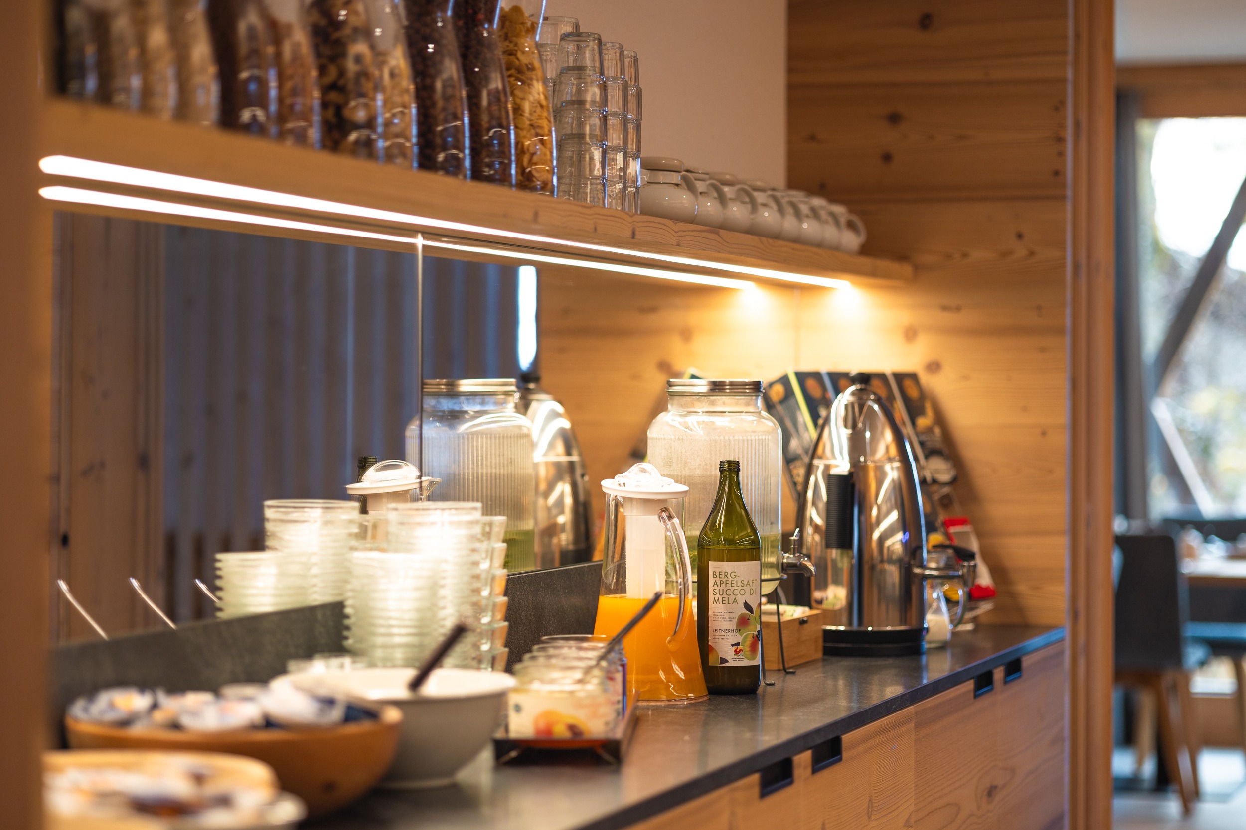 Der Morgen in der Garni Residence Alnö beginnt mit einem liebevoll angerichteten Frühstücksbuffet. Regionale Produkte, frisches Gebäck, hausgemachte Spezialitäten und eine feine Auswahl an süßen und herzhaften Köstlichkeiten sorgen für einen energiegeladenen Start in den Tag. So wird das Frühstück zum ersten kleinen Highlight jedes Urlaubsmorgens.