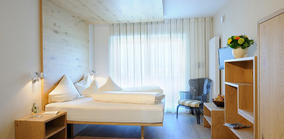 Die Zimmer mit Panoramablick sind ebenfalls puristisch modern eingerichtet. Eine Besonderheit ist die innovative Belüftungsanlage, die stets ein angenehmes Klima erzeugt – ohne störende Geräusche oder Zugluft, wie es bei herkömmlichen Klimaanlagen oft der Fall ist.