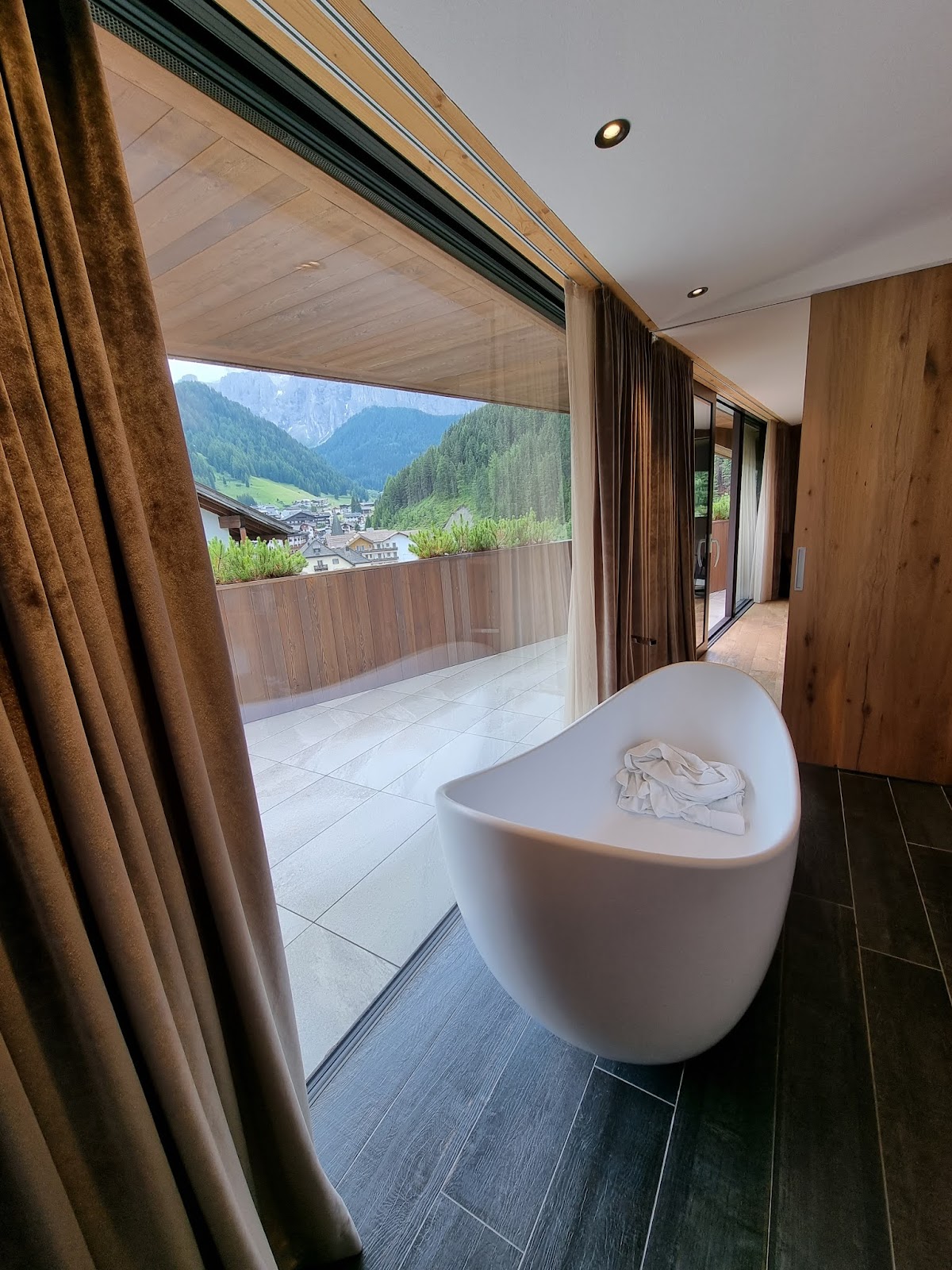 Im eigenen Wellnessbereich des Hotels Chalet S Dolomites entspannen sich Gäste und lassen den hektischen Alltag weit hinter sich. Dafür sorgen ein Dampfbad, die Sauna, eine Ruhe-Oase und das Kneipp-Tretbecken im Vita Sana. Das besondere Highlight im Wellnessbereich ist der Whirlpool im Außenbereich. Er bietet Ihnen einen unvergesslichen Panoramablick auf den Sellastock.