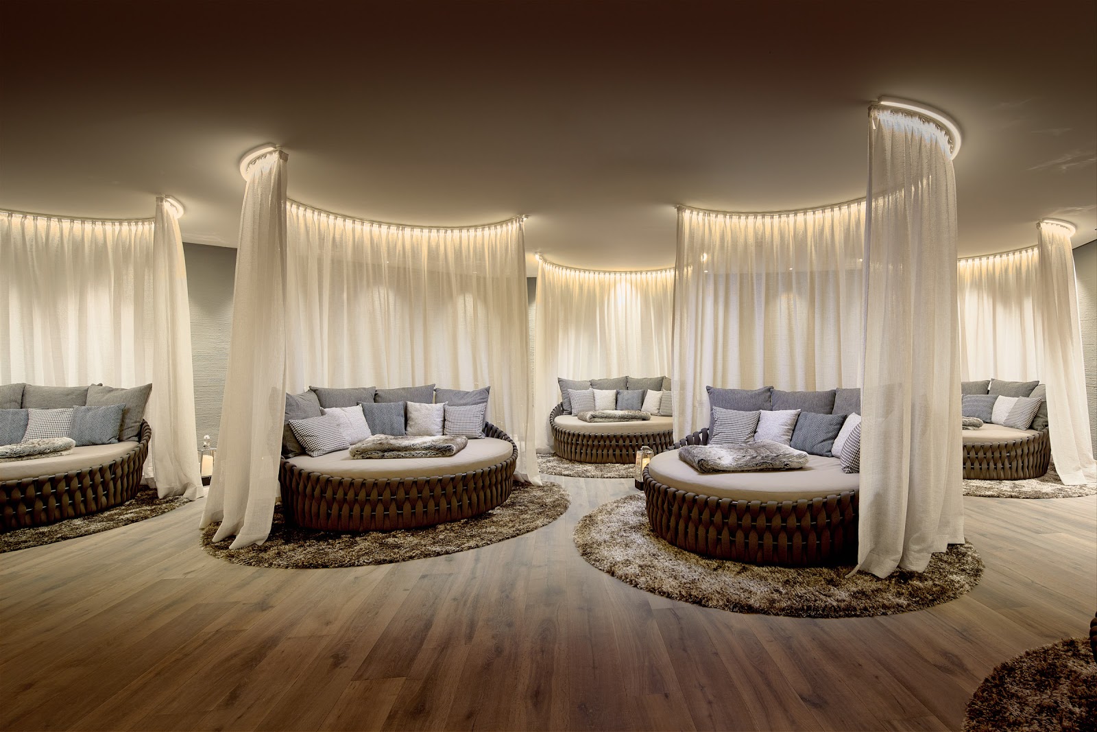 Auf den einzelnen Ebenen sorgen ausgedehnte Ruhebereiche, ein veränderter Innen- und Außenpool, eine komplett umgestaltete Saunawelt mit Finnischer Sauna und sanfter Biosauna, Infrarotliegen, Dampfbad, sieben Behandlungsräume, ein Meditationsraum sowie ein großer Fitnessbereich mit Techno-Gym-Geräten und eine Spa-Rezeption für Wohlfühlerlebnisse.