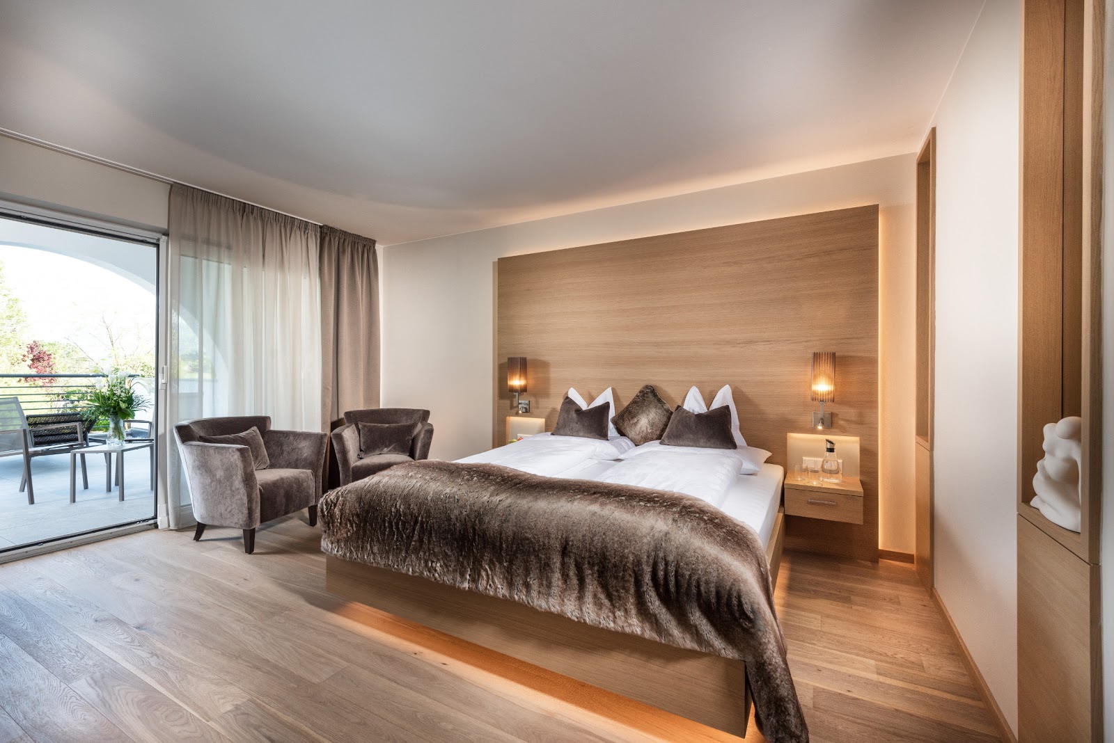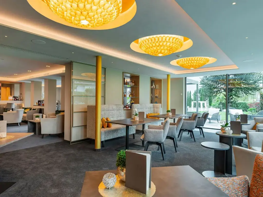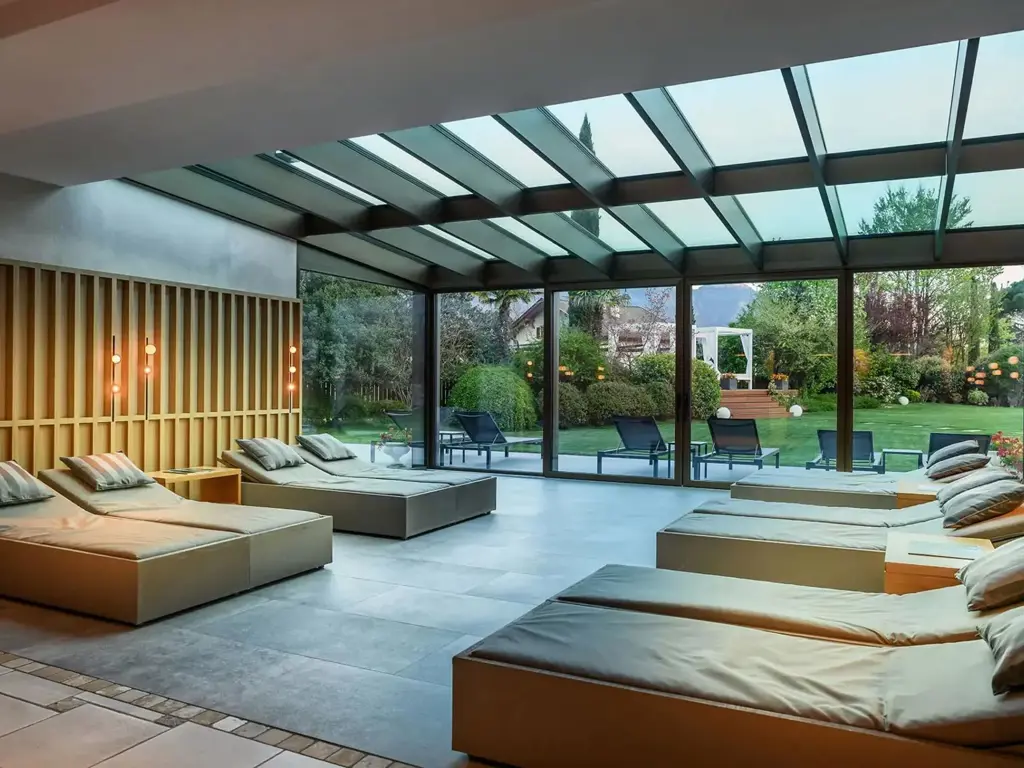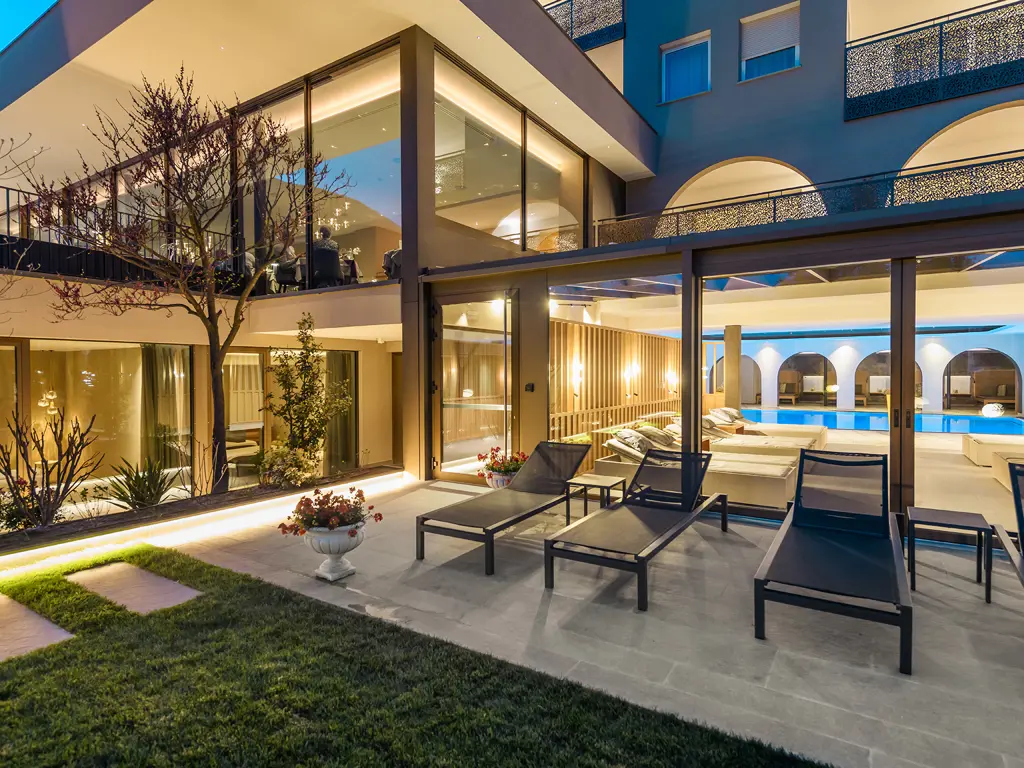 Die großzügigen Zimmer und Suiten mit Panoramabalkon überzeugen durch natürliche Materialien, elegantes Design und klare Linien. Im mediterranen Garten erwartet Sie eine grüne Wohlfühloase mit beheiztem Infinity Pool, gemütlichen Liegebereichen und viel Platz zum Abschalten. Im Spa- und Wellnessbereich sorgen Saunen, wohltuende Treatments und ruhige Rückzugsorte für tiefe Regeneration – perfekt nach einem aktiven Tag in der Natur.