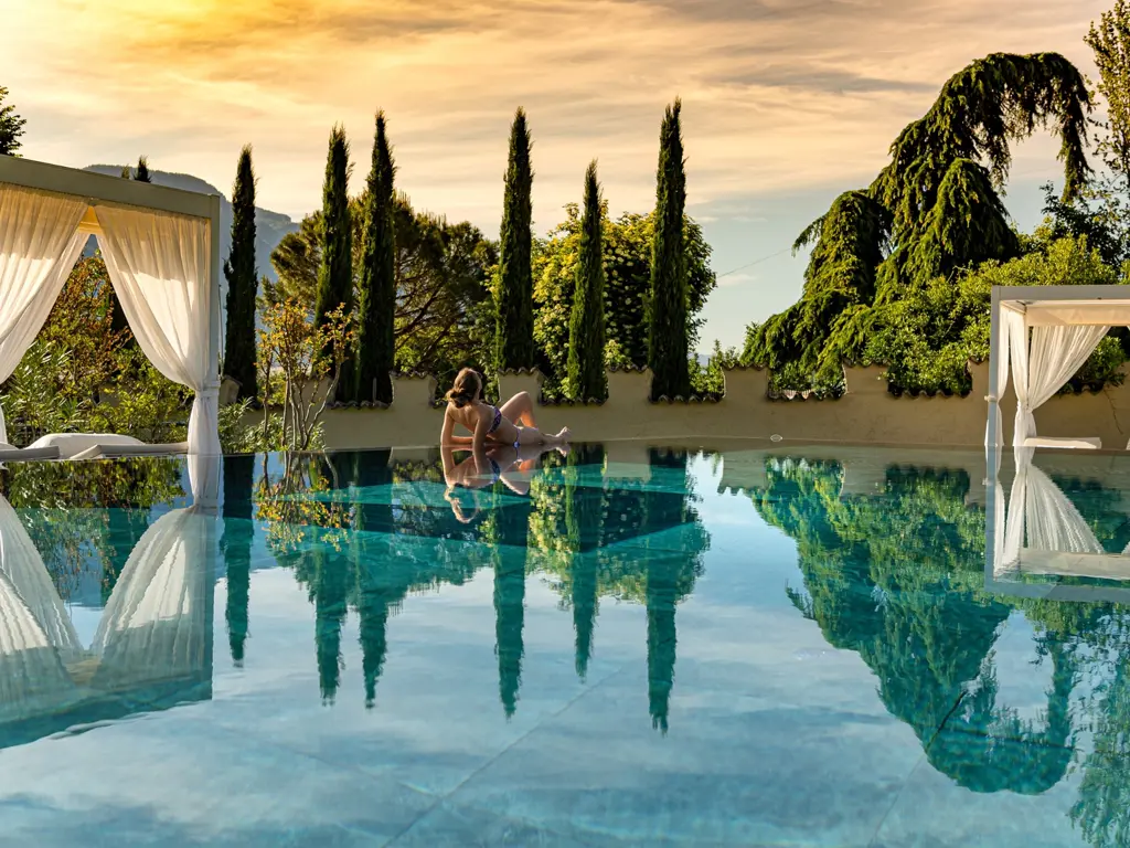 Willkommen im FAYN garden retreat hotel in Algund – einem besonderen Rückzugsort im Meraner Land, wo mediterranes Lebensgefühl auf alpine Weite trifft. Umgeben von Obstgärten und in ruhiger Panoramalage eröffnet sich ein beeindruckender Blick auf die Texelgruppe. Die charmante Kurstadt Meran mit ihren Lauben, Promenaden und saisonalen Märkten erreichen Sie in wenigen Minuten. Direkt vor der Haustür laden der Algunder Waalweg und der Tappeinerweg zu entspannten Spaziergängen mit herrlichen Ausblicken ein.