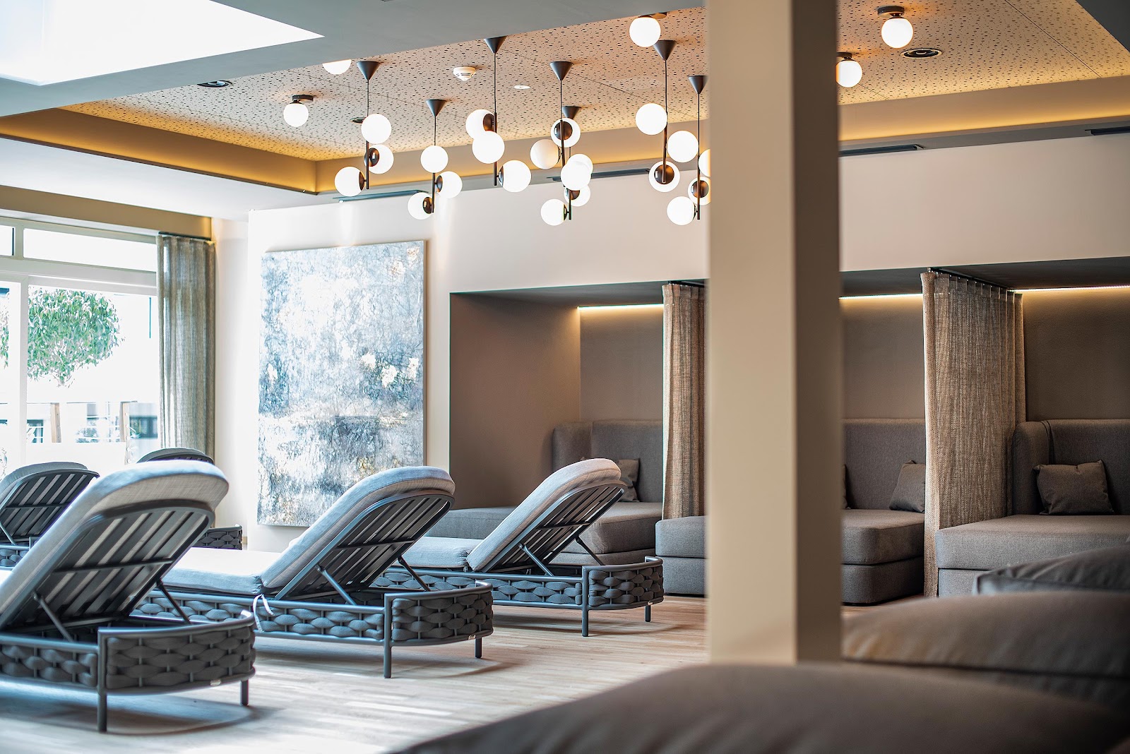 Der Wellnessbereich des Hotels ist rund 2.360 Quadratmeter groß und umfasst mehrere Bereiche. Im Winter ziehen Sie im Hallenbad Ihre Bahnen, während die Sommermonate Sie in das beheizte Freibad locken. Mit dem Blick in den Tiroler Himmel können Sie hier sportlich schwimmen oder einfach die Leichtigkeit des Körpers im 28 Grad warmen Wasser genießen. Ebenso gehören eine Saunalandschaft, Massagen und kosmetische Anwendungen zum Wellnessprogramm.