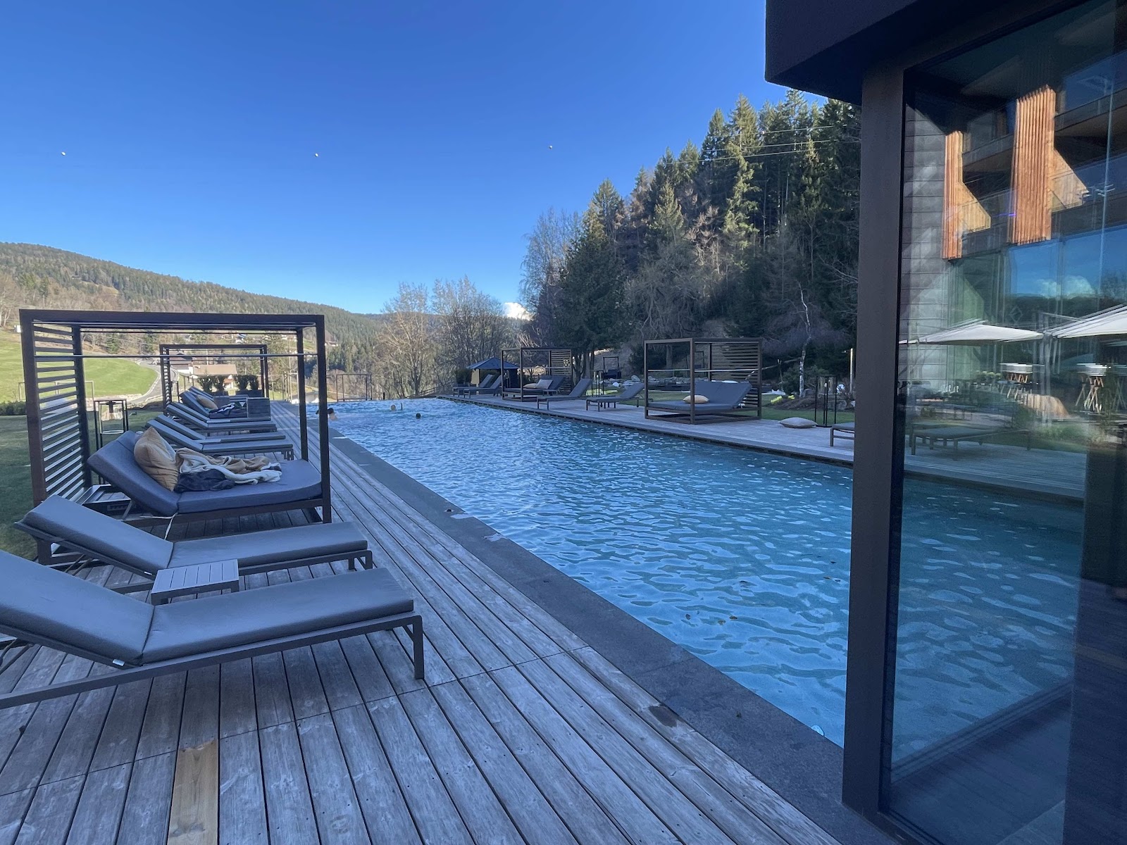 Das VIKTORIA ALPINE SPA RESORT befindet sich in schöner Lage auf einem Hochplateau oberhalb von Meran, mit viel Sonne und Ruhe. Großzügiger Poolbereich mit diversen Liegemöglichkeiten. Super schöner, moderner, geschmackvoller Spa Bereich (geteilt in einen Bereich für Familien und einen Adults-Only-Bereich).